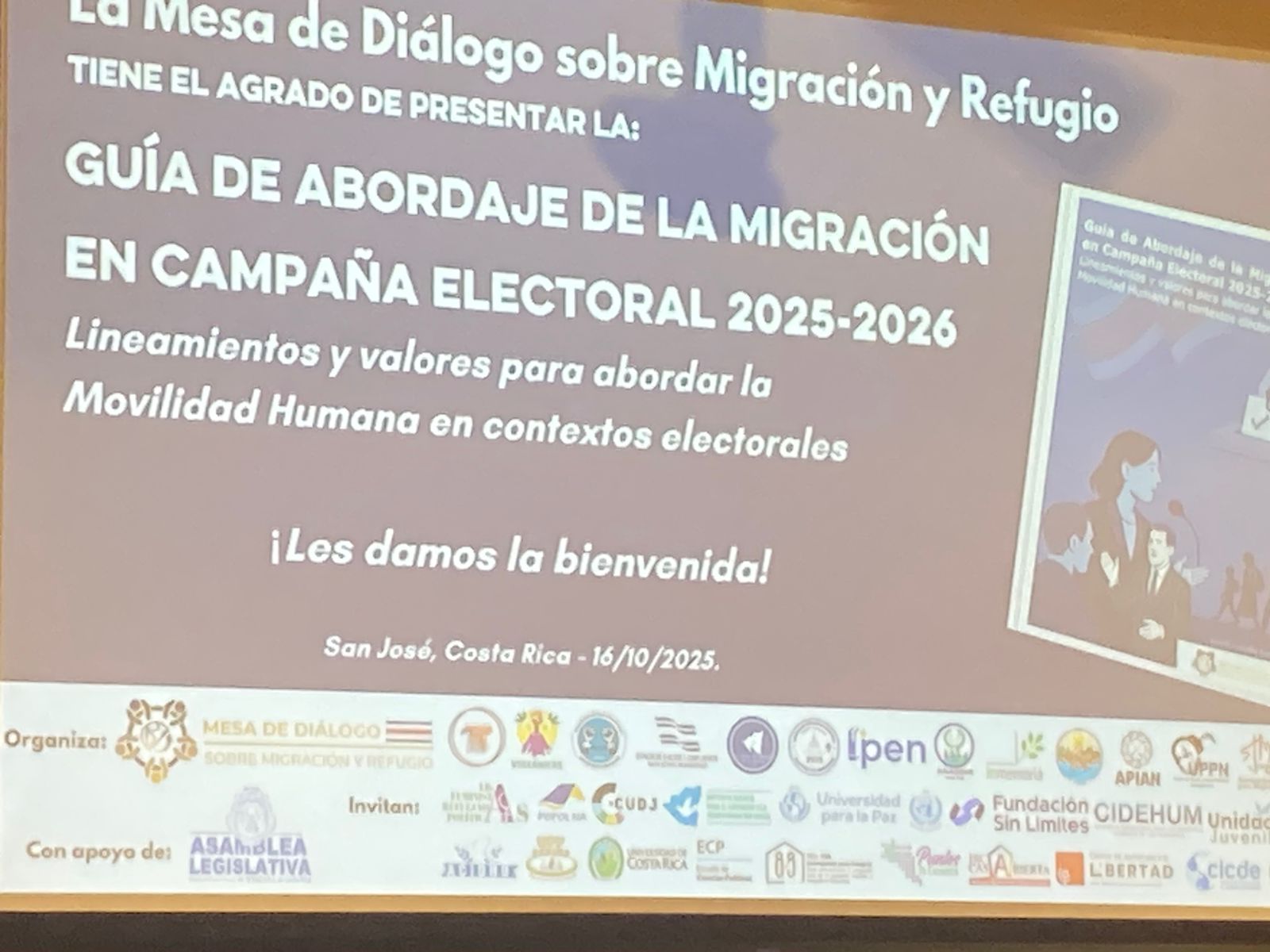 En el marco de las elecciones 2026 para la presidencia, vicepresidencias y diputaciones el pasado 16 de octubre se presentó la “Guía de Abordaje de la migración en la campaña electoral 2025-2026”Queremos un debate público respetuoso, inclusivo y libre de odio, en línea con los compromisos internacionales que Costa Rica ya ratificó en Derechos Humanos.